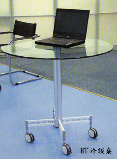 HT洽談圓桌,桌腳為鋁合金(桌面可選擇清玻、霧玻、美耐板面)。